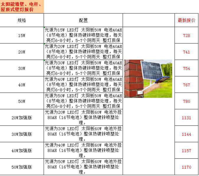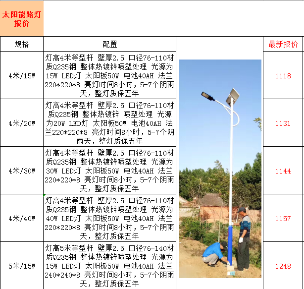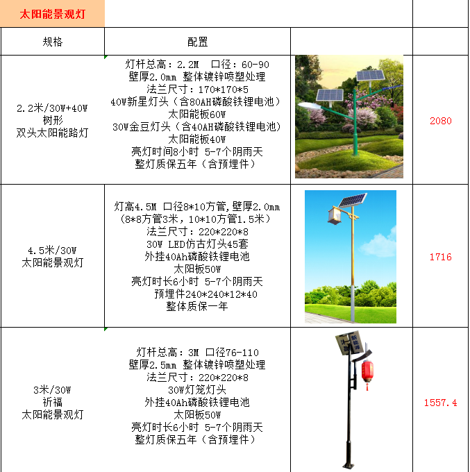 以下為部分路燈產品報價,更多報價請聯系客服