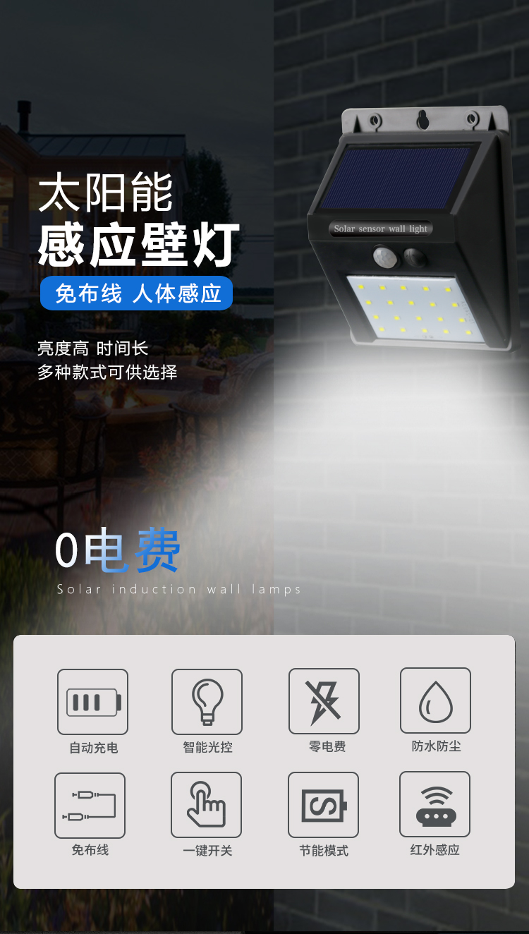 太陽能燈戶外感應(yīng)燈室外庭院燈小壁燈超亮新農(nóng)